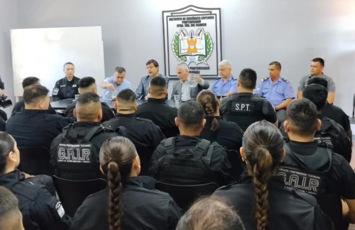El ministro explicó: “Tuvimos una reunión en la escuela del Servicio Penitenciario con la plana mayor, las Unidades Especiales que prestan servicio en el complejo de Benjamín Paz, como también su Guardia Interna y el Subsecretario de Servicios Penitenciarios”.