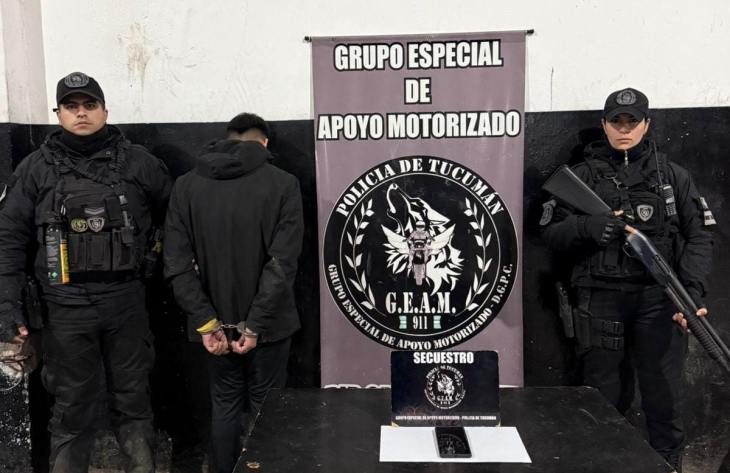 En un procedimiento realizado en la noche del jueves, los efectivos de la División GEAM (Grupo Especial de Apoyo Motorizado) aprehendieron a un joven que tenía un celular bloqueado por robo.