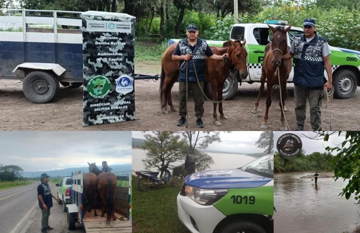 “Un llamado anónimo informó que dos sujetos iban montando en dos equinos peruanos y llevaban a tiro un potrillo, por la zona del Cementerio del Ángel, con rumbo hacia el Río Salí, y que estos animales presuntamente serían robados”, dijo la subcomisario Edith Páez, jefa de la División 6 Capital. En consecuencia, el equipo de turno se dirigió hacia el lugar y vecinos de la zona afirmaron haber visto a dos personas, con similares características a las mencionadas en el llamado, recibido en la mañana de este sábado.
