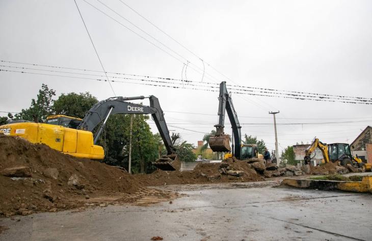 Bajo las instrucciones del gobernador Osvaldo Jaldo, los equipos técnicos y operativos de Vialidad y la Dirección Provincial del Agua trabajan con maquinaria pesada —retroexcavadoras, retropalas, camiones y cargadoras— para el reacondicionamiento y posterior repavimentación con hormigón.