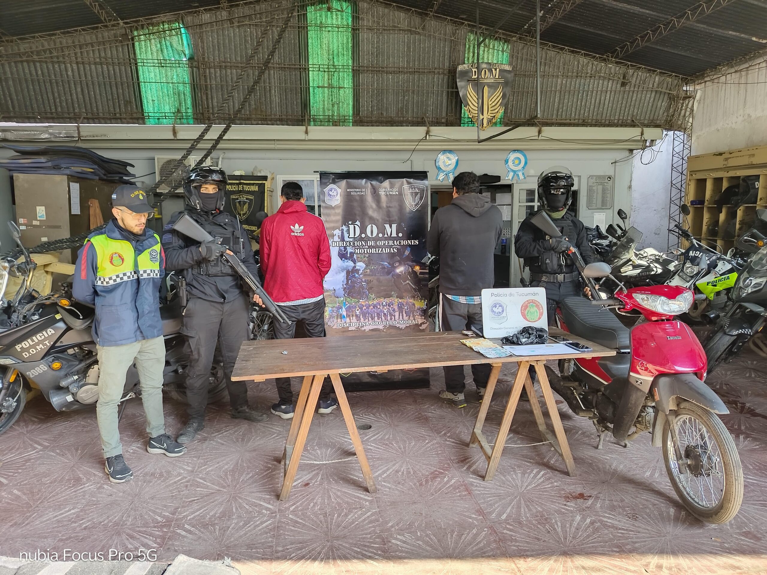 Dos hombres de 32 y 45 años fueron aprehendidos este domingo por efectivos de la División de Operaciones Motorizadas Tucumán (D.O.M.T), tras ser sorprendidos con estupefacientes mientras circulaban en una motocicleta por la capital tucumana.El operativo se realizó en la intersección de avenidas Pedro Miguel Aráoz y Brígido Terán, cuando los motoristas detuvieron a los sospechosos al advertir que transitaban sin chapa patente y uno de ellos sin casco, en infracción a la Ley Nacional de Tránsito N° 24.449.Durante la inspección del rodado y en presencia de testigos, los efectivos hallaron una piedra de cocaína oculta en el interior del asiento. Posteriormente, el personal de la Dirección de Drogas Peligrosas (Didrop) Capital realizó las pruebas de campo, confirmando que se trataba de 13 gramos de cocaína compactada.El fiscal José San Juan Quirós, titular de la Unidad Fiscal de Narcomenudeo (UFINAR), dispuso el secuestro de la sustancia, del vehículo en el que se trasladaban, un teléfono celular y dinero en efectivo, en el marco de una causa por infracción a la Ley de Estupefacientes N° 23.737. Asimismo, convalidó la aprehensión de ambos individuos y solicitó sus antecedentes penales.