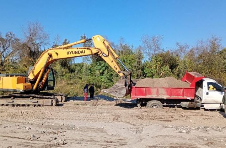 En el lugar se constató la presencia de una grilla, una máquina excavadora y...