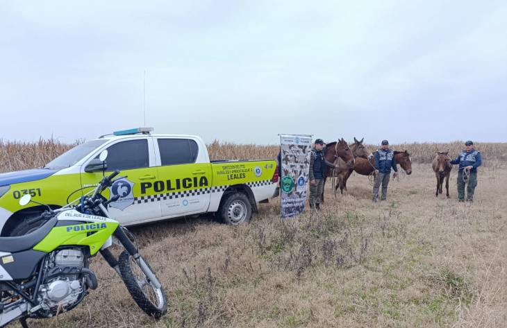 Luego de un intenso rastrillaje por una zona de cañaverales de la localidad de Tusca Pozo, los efectivos de la División de Delitos Rurales y Ambientales N° 2 de Villa de Leales recuperaron cuatro animales equinos que habían sido robados y se encontraban atados en un monte. Los animales fueron reconocidos por el denunciante como suyos y luego puestos a disposición de la Unidad Fiscal de Decisión Temprana en una causa de abigeato. El accionar policial fue supervisado por el coordinador de la Zona Este, Comisario Inspector Walter Luna.